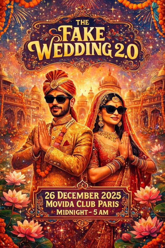 The Big Fake Indian Wedding 2.0 arrive à Paris. Cet événement incroyable n’est pas un vrai mariage mais une célébration culturelle joyeuse inspirée des traditions de mariage indien, de la musique, de la danse, des couleurs et de rituels festifs.
