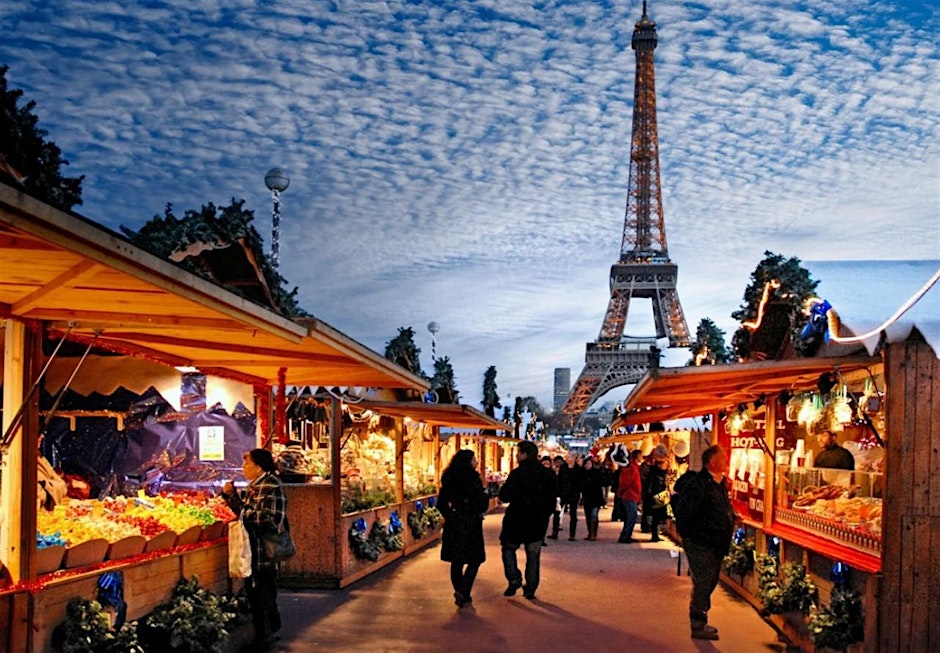 Enjoy holiday snacks, winter decorations, and festive pop-up stalls with unbeatable views of the twinkling Eiffel Tower.